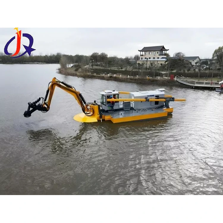 જળચર નીંદણ હાર્વેસ્ટિંગ અને ભંગાર પુનઃપ્રાપ્તિ: કલેક્શન રેક્સ અથવા ગ્રેબ બકેટ્સથી સજ્જ, તે જલીય વનસ્પતિ, તરતો ભંગાર અને ઔદ્યોગિક સેડિમેન્ટેશન તળાવના કાદવને અસરકારક રીતે સાફ કરે છે.